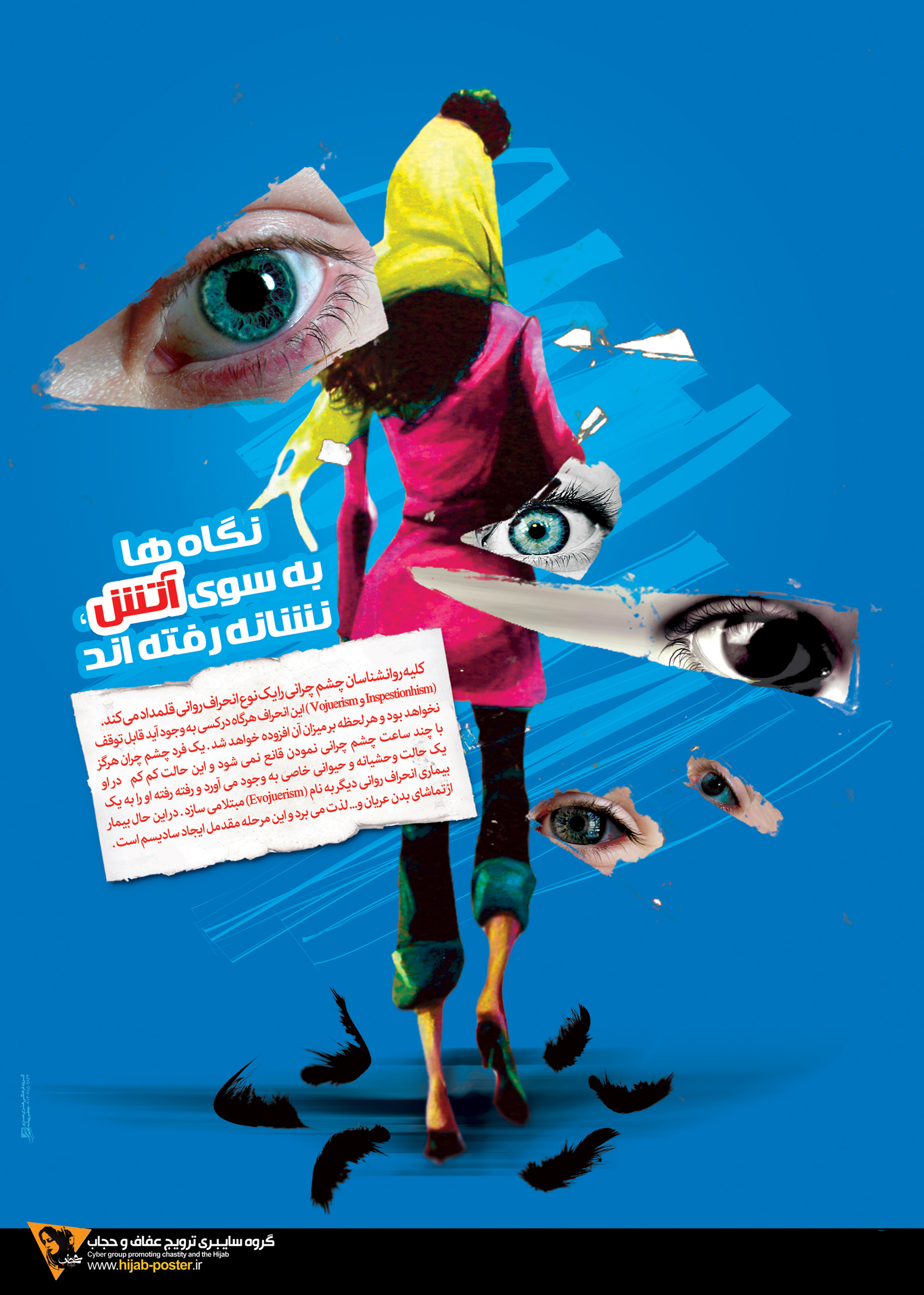 قرآن کریم: ای رسول! زنان مؤمن را بگو که چشمها ( از نگاه ناروا بپوشند) و فروج و اندامشان را ( از عمل زشت) محفوظ دارند و زینت و آرایش خود جز آنچه قهراَ ظاهر می شود بر بیگانه آشکار نسازند و باید سینه و بر و دوش خود را به مقنعه بپوشانند و زینت و جمال خود را آشکار نسازند جز برای ... (محارم).