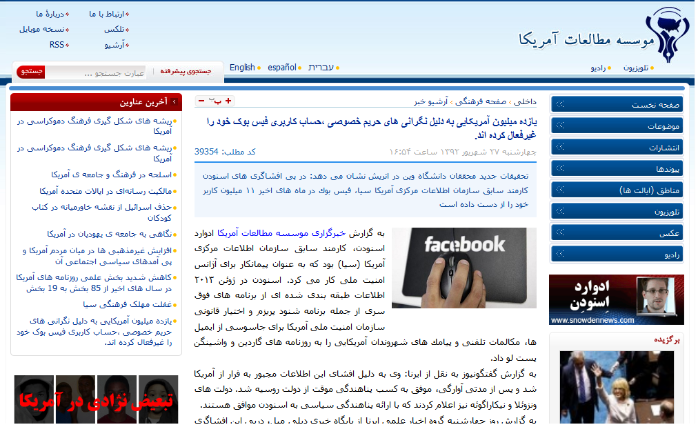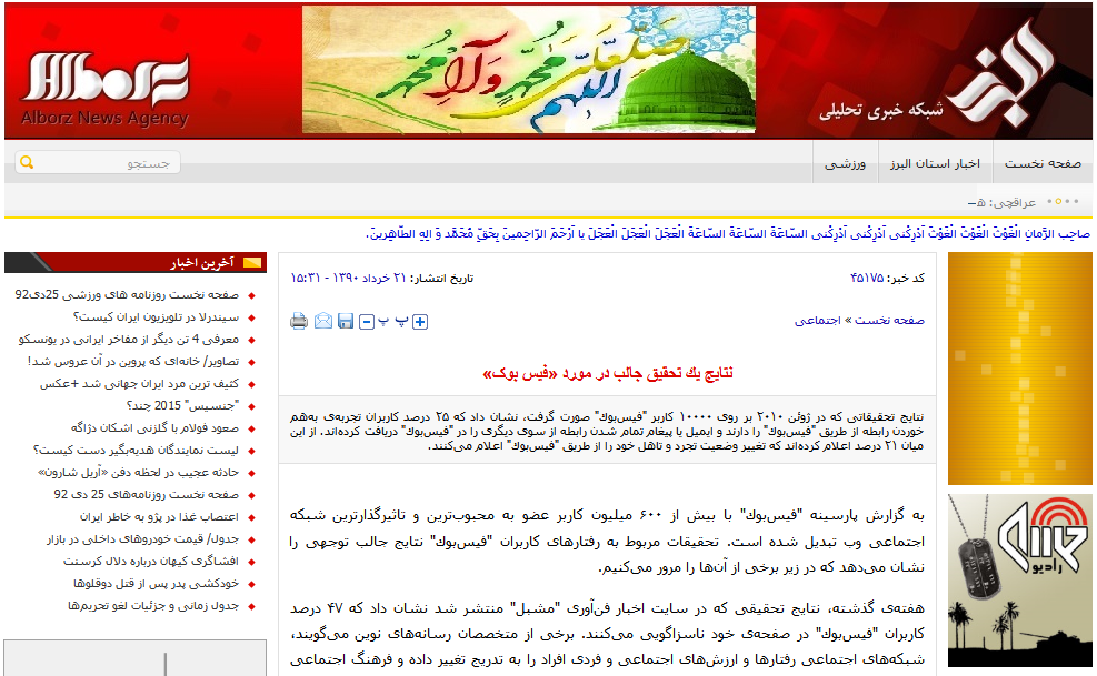 1- یازده میلیون کاربر فیسبوک دست به خودکشی هویت مجازی خود زده اند و به دلیلِ نداشتنِ حریم خصوصی و ترس از اعتیاد به فیسبوک، این سایت را ترک کرده اند. منبع: سایت موسسه مطالعات آمریکا 92/6/27